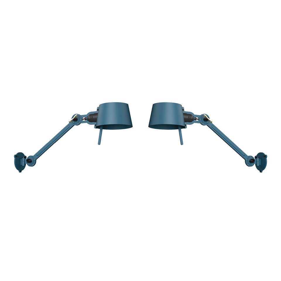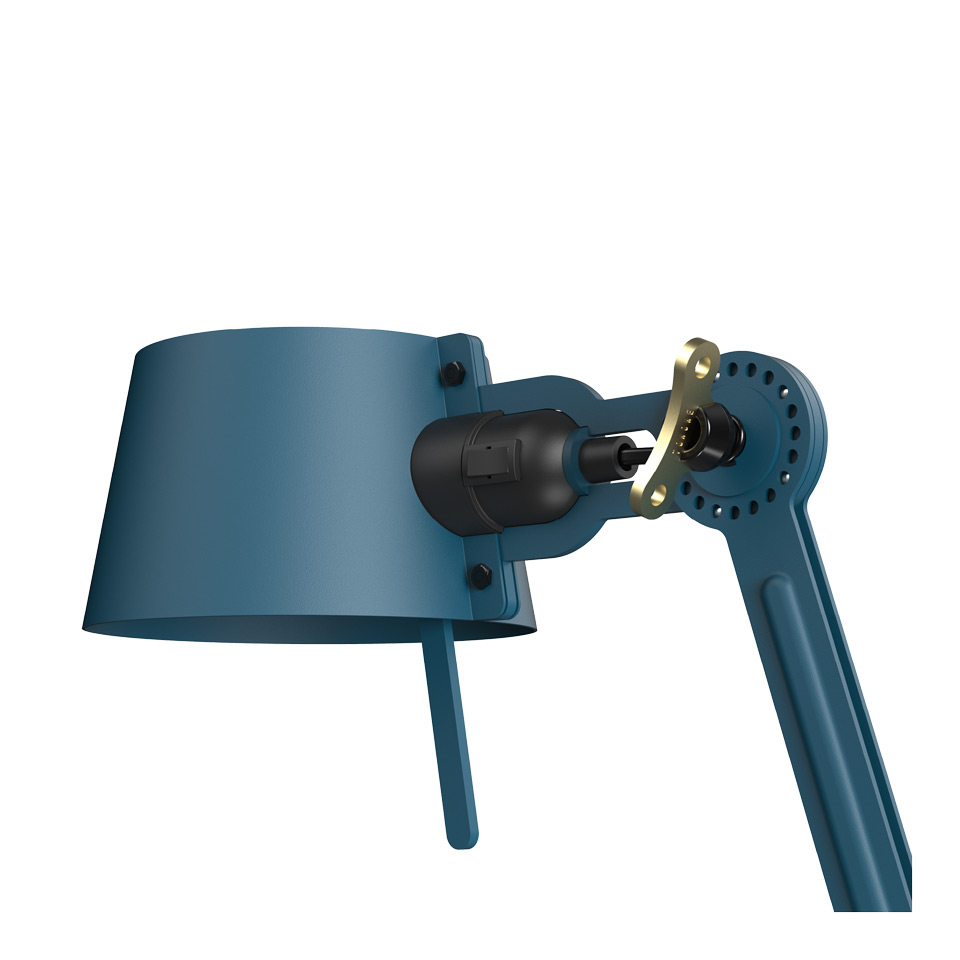 La lampe de chevet Bolt revisite les codes du style industriel avec sa finition bleu orage. Le bras à rotule crantée autorise un réglage précis de la lampe grâce à une pièce papillon livrée avec la lampe utilisable sur les deux points de réglage. Sa finition mate bleu orage est légèrement grainée. Le réflecteur s'oriente facilement grâce à une poignée latérale, et l'interrupteur est discrètement placé sur le côté. Comme toutes les pièces de la collection, cette applique est livrée avec l'outil papillon en laiton doré siglé TONONE. Une option de câble d'alimentation avec prise murale est disponible sur simple demande.