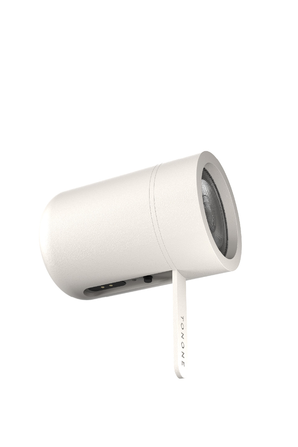 Le spot sans fil One se compose de deux éléments?: un pommeau mural en acier inoxydable et un diffuseur orientable à aimanter, équipé d'un éclairage LED intégré de grande qualité, le tout en finition blanc mat légèrement grainée. Une poignée discrète permet d'ajuster l'orientation du faisceau en toute simplicité. Rechargeable par USB-C, elle offre une autonomie modulable de 5 à 30?heures selon l'intensité choisie grâce au variateur intégré. Fabriquée en aluminium et acier, cette lampe sans fil allie mobilité, élégance et fonctionnalité. Le pommeau peut rester apparent ou accueillir le diffuseur, dans une cuisine, ou comme lampe de chevet par exemple. Tonone propose ici une solution contemporaine sobre et efficace. La marque de design néerlandaise se distingue par sa rigueur artisanale et une esthétique industrielle aux lignes durables.
