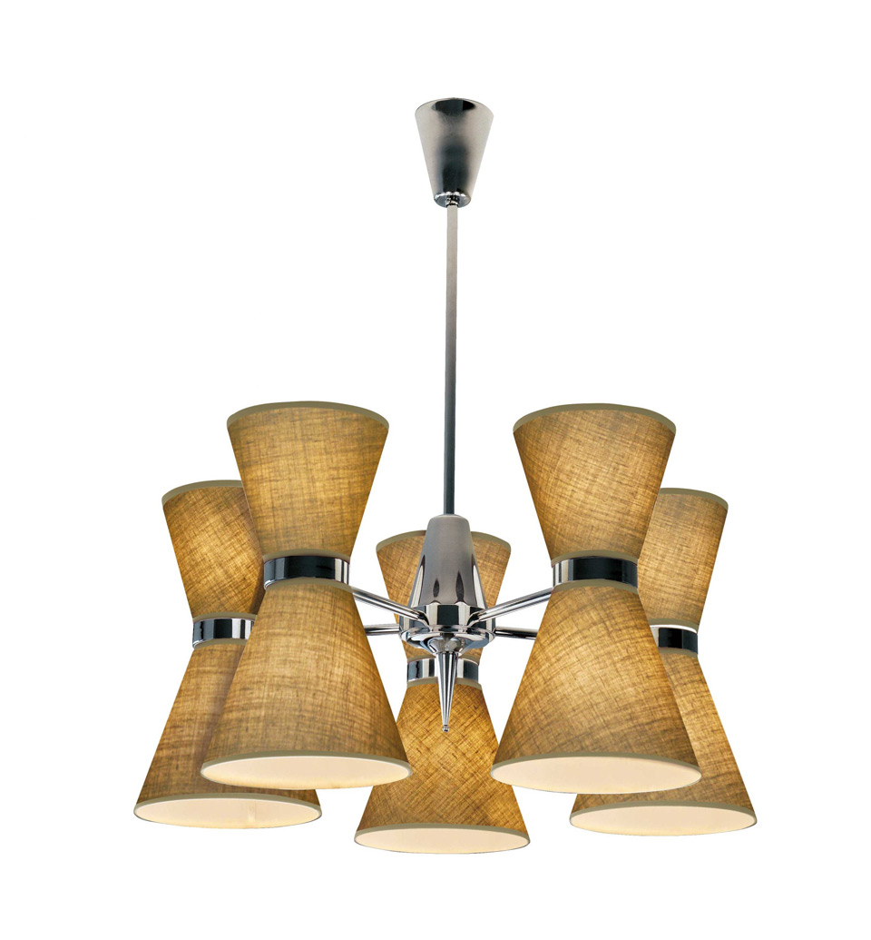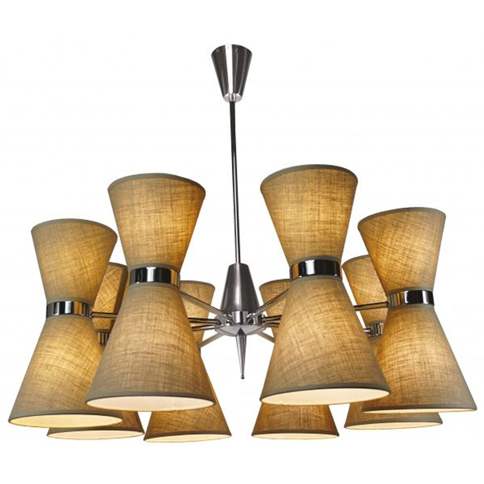 Lustre en métal chromé et abat-jours en lin naturel, disponible en 8 lumières - Estro - Lustre