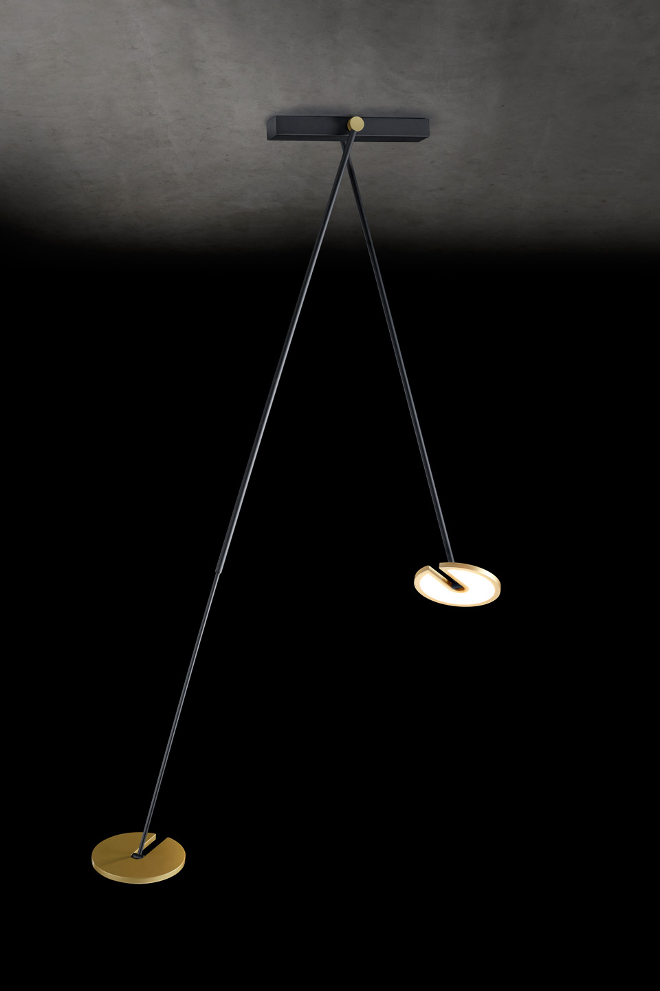 Résolument contemporain, le plafonnier double Janus, avec ses bras télescopiques réglables, ses deux têtes orientables et sa structure en métal noir, dans un esprit minimaliste, éclairé par modules LED intégrés puissant et de grande qualité. Il est doté d'un support de plafond rectangulaire sur lequel sont fixés les deux bras télescopiques, chacun sur un axe qui permet l'orientation du bras à 180°. Le plafonnier est entièrement en métal avec une belle finition noir mat. Les têtes de lampe fixées au bout de chaque bras sont orientables et équipées de modules LED intégrés.