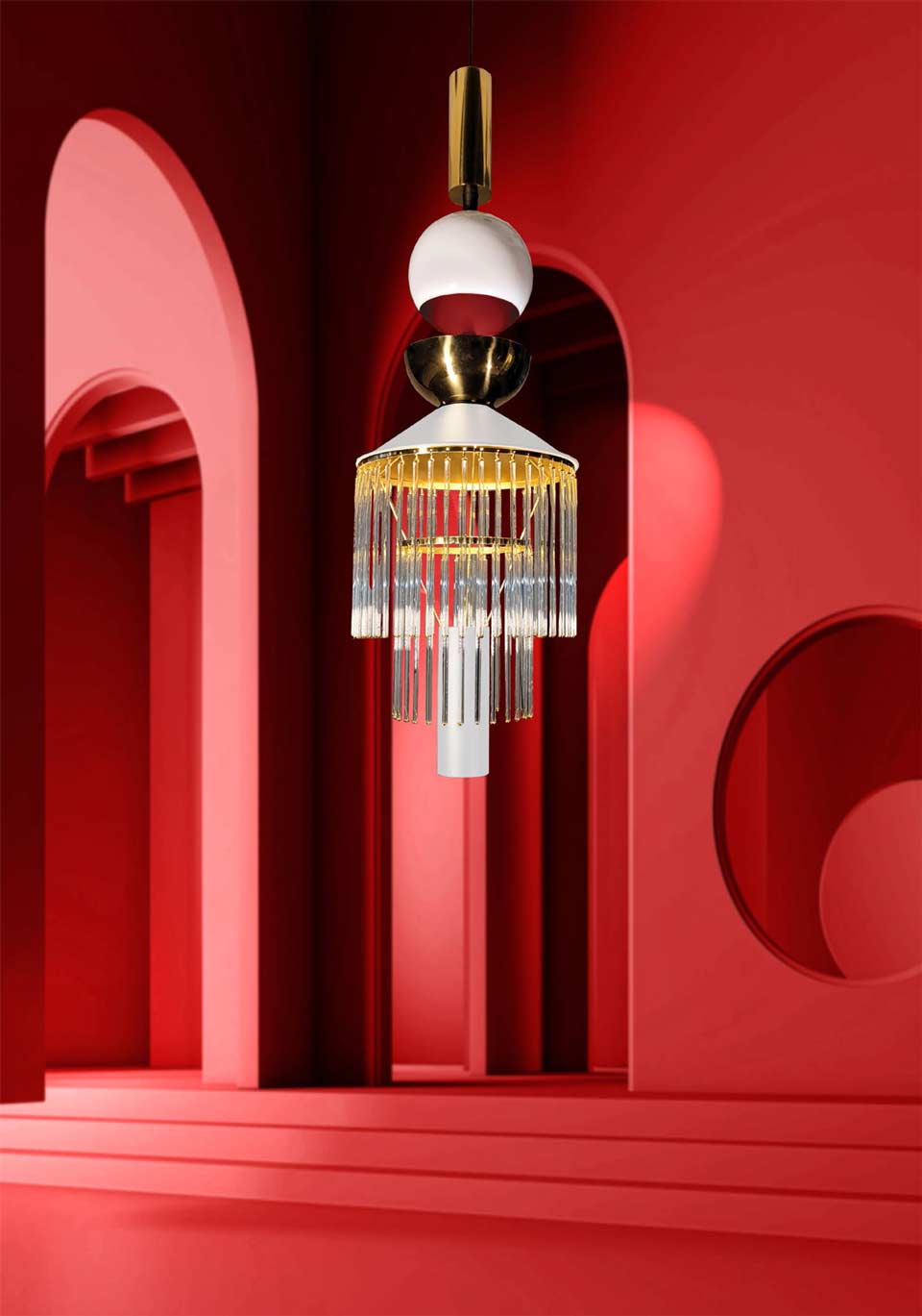 Suspension blanche et rouge détails dorés, plusieurs variations de forme et couleurs disponibles - Myo - Suspension