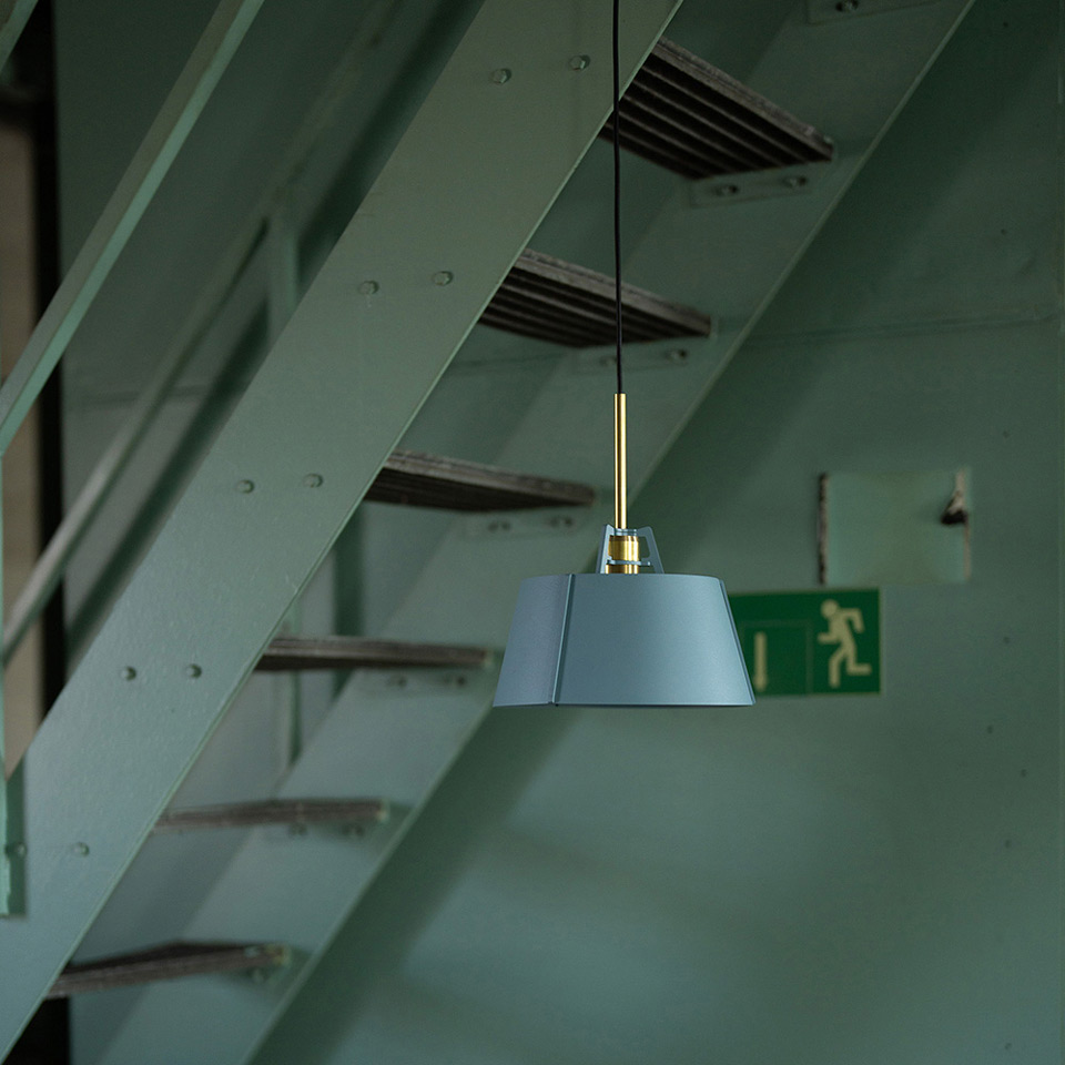 Avec sa finition bleu glacier, la suspension Bella apporte fraîcheur et design minimaliste avec son abat-jour conique et sa douille dorée. L'abat jour légèrement conique, en aluminium bleu glacier mat à la surface subtilement grainée, est suspendu par un câble noir à un support de plafond rond de même teinte. La douille en laiton doré diffuse la lumière vers le haut et le bas, dans une construction nette et sans vis apparente. Parfaite au dessus d'une petite table à manger ou posée en série au-dessus d'un comptoir de cuisine . Modèle iconique du designer Anton de Groof pour la marque Tonone, la suspension Bella est fabriquée en acier et aluminium avec un soin artisanal hollandais, et combine fonctionnalité et caractère visuel intemporel.