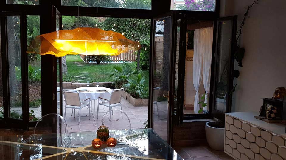Aura est conçue pour être installée au-dessus d'une table, d'un îlot ou dans un espace de réception, où elle apporte une présence lumineuse enveloppante.