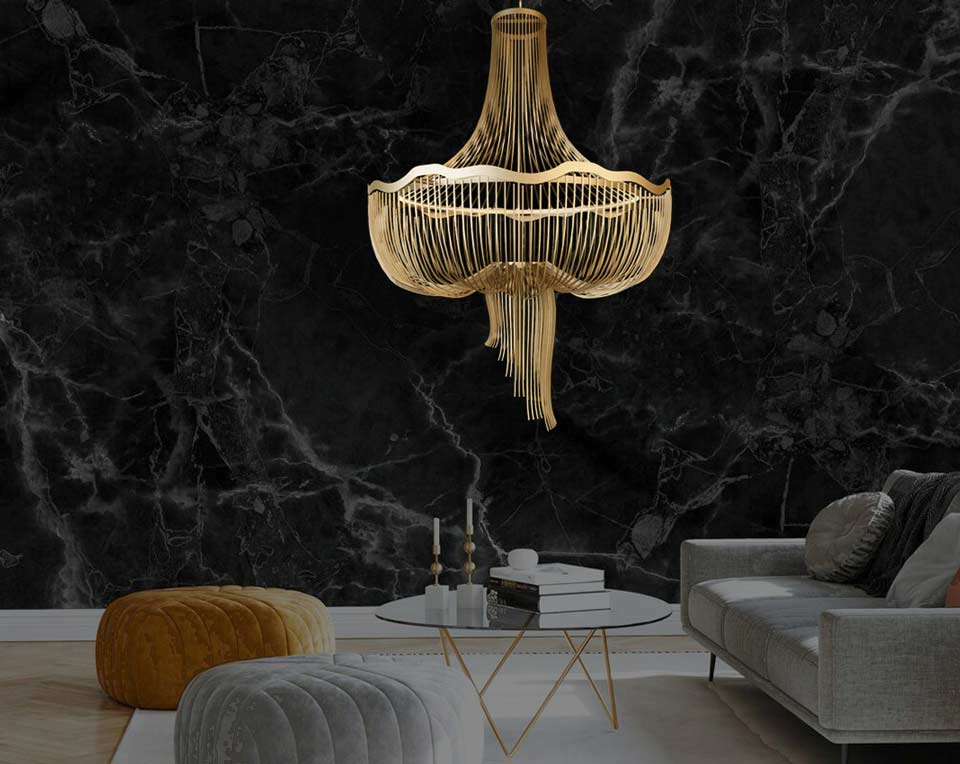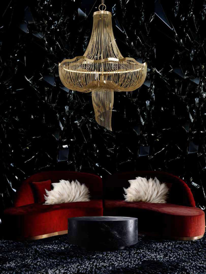 La suspension contemporaine Medusa est une sculpture lumineuse en acier doré mat à éclairage LED intégré, dont le dessin spectaculaire s'inspire de l'univers marin et de l'étonnante majesté de la créature qui lui donne son nom. Sa structure se compose de tiges fines formant un drapé aérien, créant une forte sensation de mouvement et de volume tout en laissant circuler la lumière. Cette composition fluide et organique revisite de manière ultracontemporaine la forme classique du lustre montgolfière. L'éclairage LED intégré sur tout le pourtour intérieur du lustre et de très belle qualité est complété par un éclairage dirigé vers le bas.