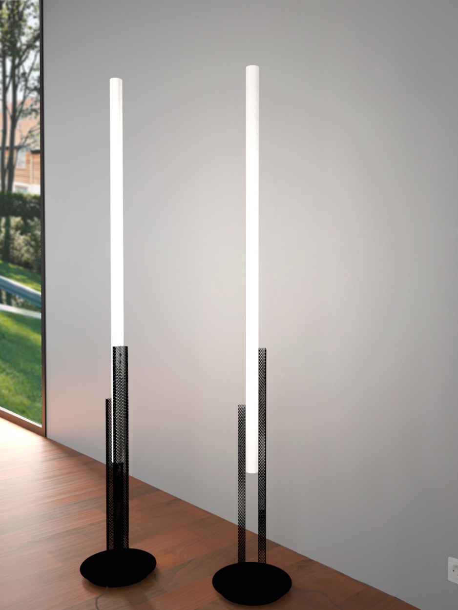 Contemporary graphic floor lamp with a tubular diffuser and built-in LED lighting - Myo - Floor lamps