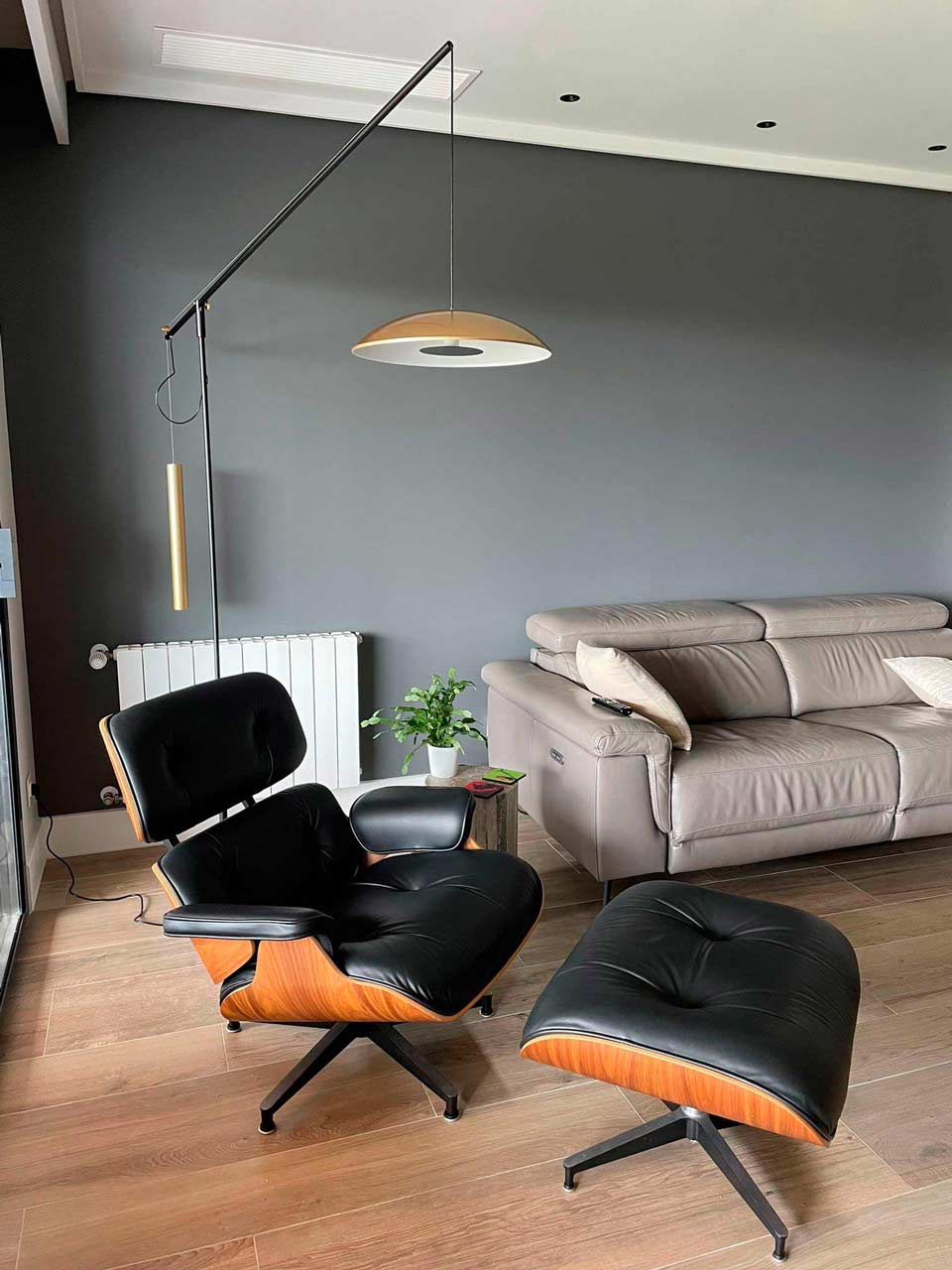 Momento large black and gold counterweight floor lamp