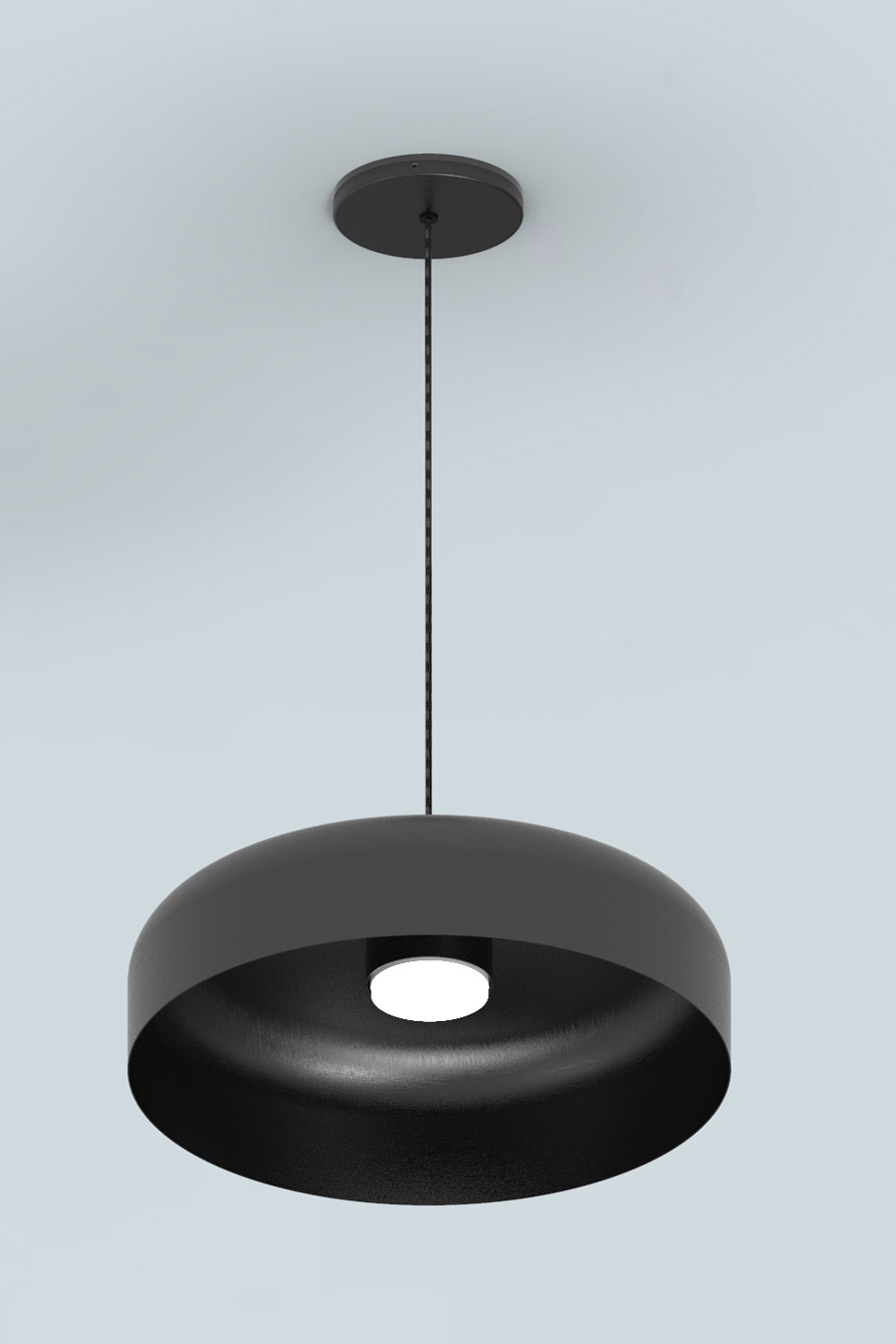 The Rea model is an elegant, contemporary, dome-shaped aluminium pendant light with a matte black finish and impeccable minimalist design. It is attached to the ceiling by a round black metal bracket and features a smooth, dome-shaped aluminium shade with a matte black finish. The power cord is made of black fabric. Used alone or in a series, the Réa model is perfect for lighting a dining room table with understated elegance. This product is manufactured in Spain and comes with a 3-year warranty.