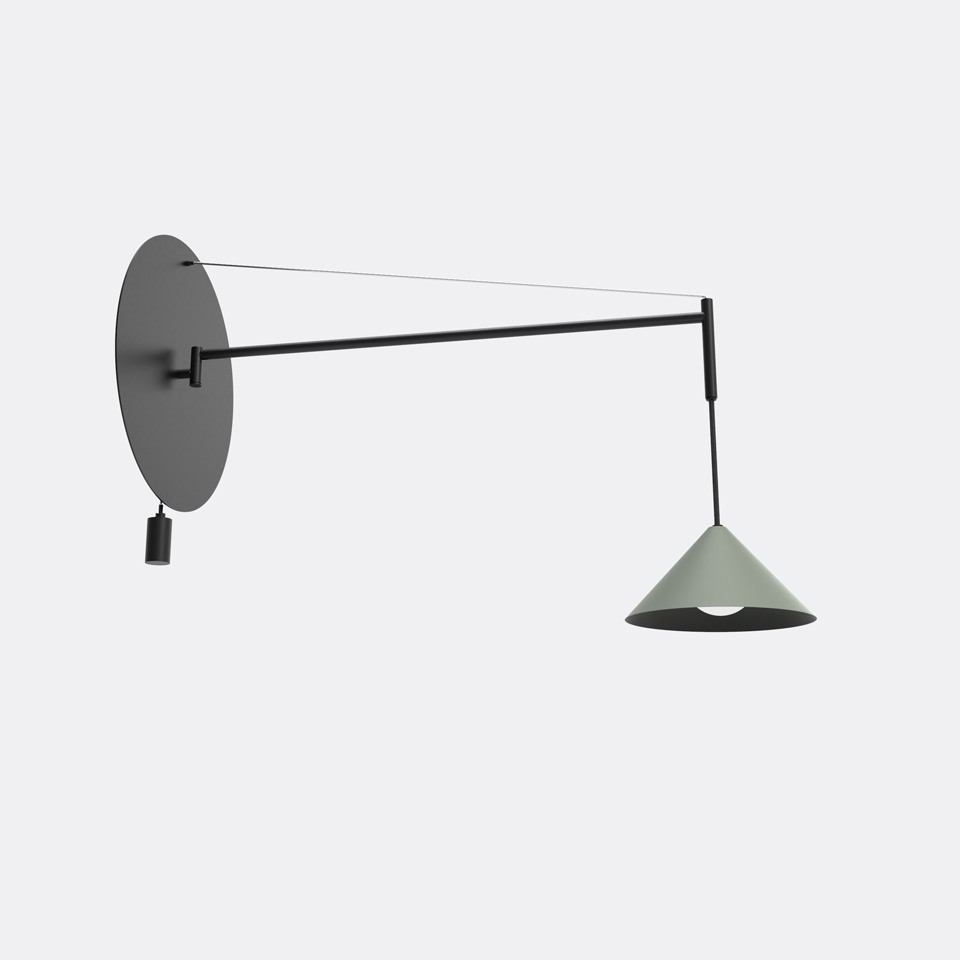 The Roma 60 cm offset wall light is a real standout thanks to its olive green conical shade and black metal frame. Its adjustable arm supports a conical shade containing an opal glass diffuser, which emits a soft, even light. Thanks to the slim metal tube arm, which pivots through 180°, the lighting can be flexibly adjusted as required. Mounted on a wall bracket, the slim painted aluminium disc creates a delicate play of shadows and incorporates a counterweight that allows the height of the lampshade to be adjusted. The Roma is ideal for installation near a sofa or headboard to provide elegant lighting.